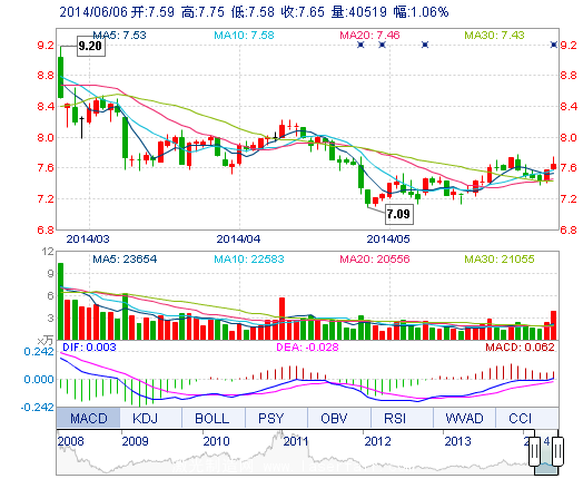 | 今 開: | 7.59 | 成交量: | 4.05萬手 | 振 幅: | 2.25% |