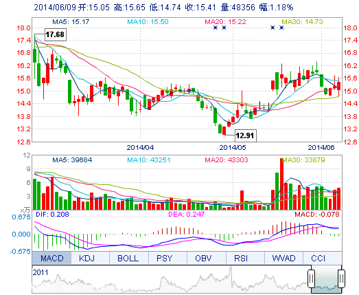 | 今 開: | 15.05 | 成交量: | 4.84萬手 | 振 幅: | 5.98% |