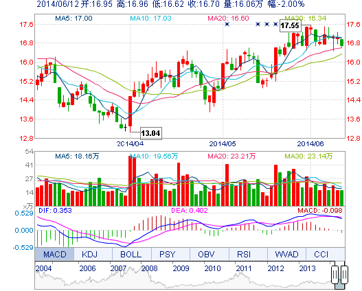 | 今 開: | 16.95 | 成交量: | 16.06萬手 | 振 幅: | 2.00% |