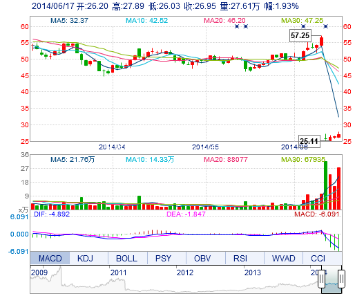 今開: 26.20 成交量: 27.61萬手 振幅: 7.03% 最高: 27.89 成交額: 7.48億元 換手率: 4.35% 最低: 26.03 總市值: 176.48億 市凈率: 4.83 昨收: 26.44 流通市值...