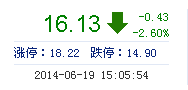 今開: 16.55 成交量: 17.08萬手 振幅: 6.46% 最高: 16.74 成交額: 2.77億元 換手率: 1.79% 最低: 15.67 總市值: 170.25億 市凈率: 4.62 昨收: 16.56 流通市值...