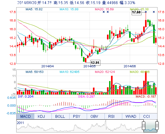 | 今 開: | 14.75 | 成交量: | 4.50萬手 | 振 幅: | 5.37% |