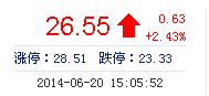 今開: 25.80 成交量: 12.02萬手 振幅: 4.32% 最高: 26.55 成交額: 3.13億元 換手率: 1.89% 最低: 25.43 總市值: 173.86億 市凈率: 4.76 昨收: 25.92 流通市值...