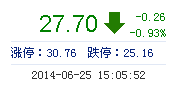 今開: 27.80 成交量: 14.74萬手 振幅: 2.90% 最高: 28.19 成交額: 4.08億元 換手率: 2.32% 最低: 27.38 總市值: 181.39億 市凈率: 4.96 昨收: 27.96 流通市值...