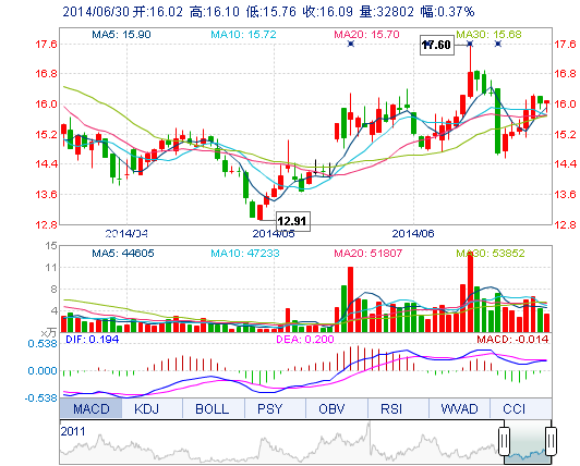 | 今 開: | 16.02 | 成交量: | 3.28萬手 | 振 幅: | 2.12% |