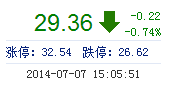 今開: 29.78 成交量: 15.07萬手 振幅: 3.08% 最高: 29.80 成交額: 4.41億元 換手率: 2.38% 最低: 28.89 總市值: 192.26億 市凈率: 5.26 昨收: 29.58 流通市值...