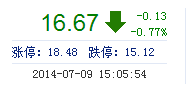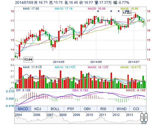今開: 16.70 成交量: 17.27萬手 振幅: 2.98% 最高: 16.95 成交額: 2.88億元 換手率: 1.81% 最低: 16.45 總市值: 175.96億 市凈率: 4.77 昨收: 16.80 流通市值...