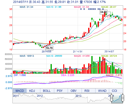 | 今 開: | 30.43 | 成交量: | 1.79萬手 | 振 幅: | 5.73% |