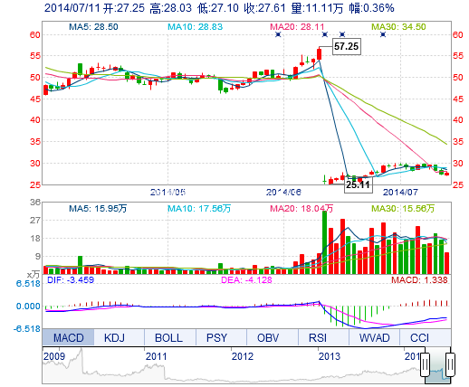 | 最 高: | 28.03 | 成交額: | 3.06億元 | 換手率: | 1.75% |