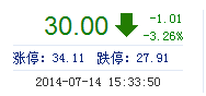 | 今 開: | 31.00 | 成交量: | 1.85萬手 | 振 幅: | 4.77% |