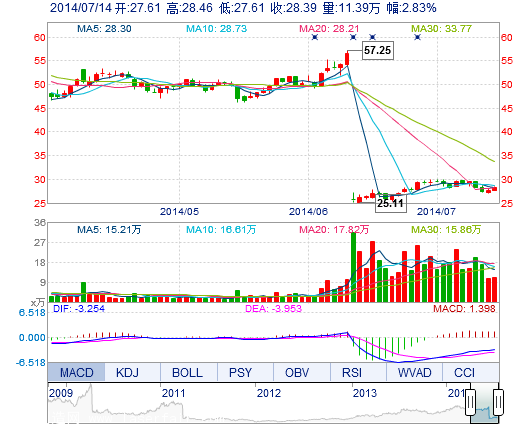 今開: 27.61 成交量: 11.39萬手 振幅: 3.08% 最高: 28.46 成交額: 3.20億元 換手率: 1.80% 最低: 27.61 總市值: 185.91億 市凈率: 5.09 昨收: 27.61 流通市值...