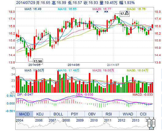 今開: 16.65 成交量: 19.45萬手 振幅: 2.53% 最高: 16.99 成交額: 3.28億元 換手率: 2.03% 最低: 16.57 總市值: 178.71億 市凈率: 4.85 昨收: 16.61 流通市值...