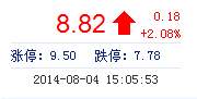 | 最 高: | 8.84 | 成交額: | 3797.40萬元 | 換手率: | 1.57% |