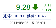 | 昨 收: | 9.39 | 流通市值: | 40.54億 | 市盈率TTM: | -- |