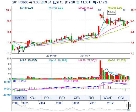 | 最 高: | 9.34 | 成交額: | 1.05億元 | 換手率: | 2.59% |
