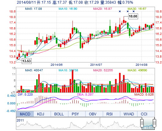 | 最 高: | 17.37 | 成交額: | 6175.78萬(wàn)元 | 換手率: | 2.67% |