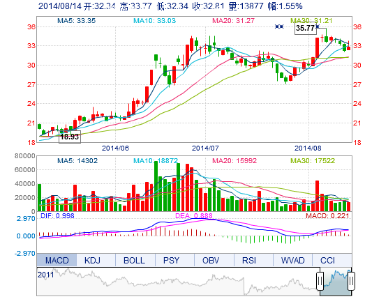 | 最 低: | 32.34 | 總市值: | 22.97億 | 市凈率: | 7.87 |
