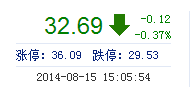| 今 開: | 32.68 | 成交量: | 1.56萬手 | 振 幅: | 3.35% |