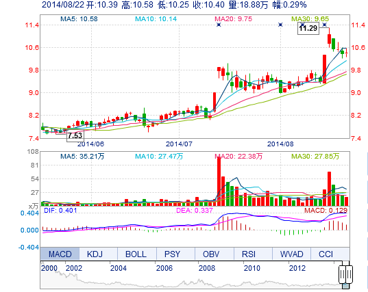 | 今 開: | 10.39 | 成交量: | 18.88萬手 | 振 幅: | 3.18% |