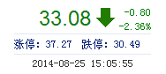 今開: 34.00 成交量: 28.79萬手 振幅: 5.14% 最高: 34.74 成交額: 9.70億元 換手率: 4.54% 最低: 33.00 總市值: 216.63億 市凈率: 12.74 昨收: 33.88 流通市...