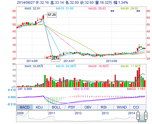 昨  收: 32.17 流通市值: 206.73億 市盈率TTM 86.13