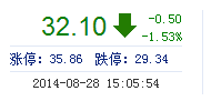 今開(kāi): 32.61 成交量: 14.20萬(wàn)手 振幅: 3.01% 最高: 32.61 成交額: 4.56億元 換手率: 2.24% 最低: 31.63 總市值: 210.21億 市凈率: 12.36 昨收: 32.60 流通市...