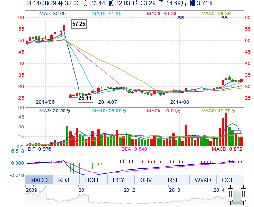 | 今 開: | 32.03 | 成交量: | 14.69萬手 | 振 幅: | 4.39% |
