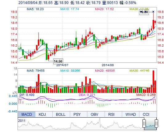 | 今 開: | 18.65 | 成交量: | 9.05萬手 | 振 幅: | 2.54% |