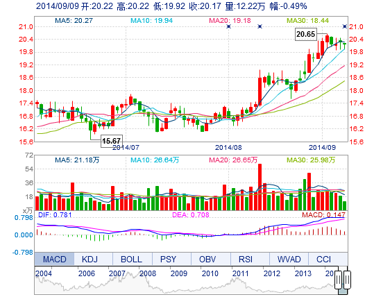 今開: 20.22 成交量: 12.22萬手 振幅: 1.48% 最高: 20.22 成交額: 2.45億元 換手率: 1.28% 最低: 19.92 總市值: 212.95億 市凈率: 5.78 昨收: 20.27 流通市值...
