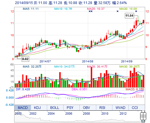 最  高: 11.28 成交額: 3.60億元 換手率: 3.66%