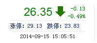 | 今 開: | 26.59 | 成交量: | 2.77萬手 | 振 幅: | 1.17% |