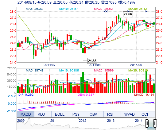 | 最 低: | 26.34 | 總市值: | 172.19億 | 市凈率: | 9.47 |