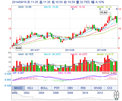| 最 低: | 10.50 | 總市值: | 94.37億 | 市凈率: | 3.49 |