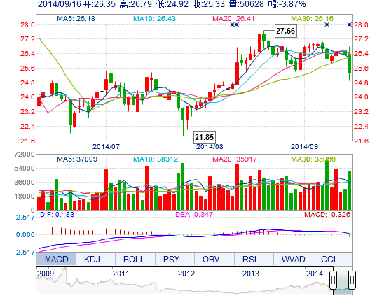 | 最 低: | 24.92 | 總市值: | 165.52億 | 市凈率: | 9.10 |