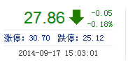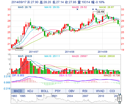 | 今 開: | 27.90 | 成交量: | 1.93萬手 | 振 幅: | 3.80% |