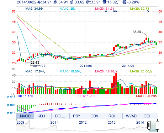 | 最 高: | 34.91 | 成交額: | 5.74億元 | 換手率: | 2.65% |