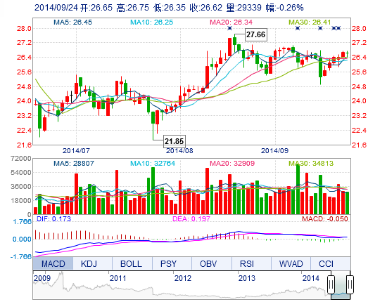 | 最 低: | 26.35 | 總市值: | 173.95億 | 市凈率: | 9.56 |