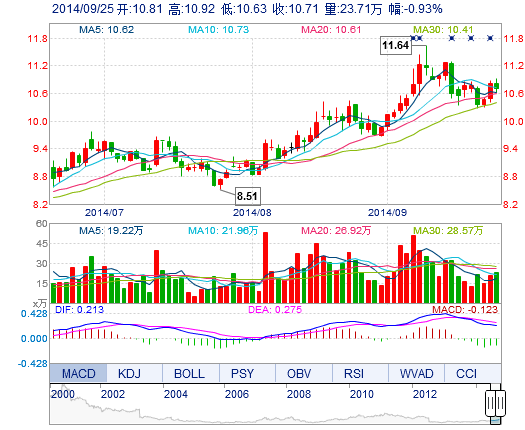 今開: 10.81 成交量: 23.71萬手 振幅: 2.68% 最高: 10.92 成交額: 2.56億元 換手率: 2.66% 最低: 10.63 總市值: 95.44億 市凈率: 3.53 昨收: 10.81 流通市值...