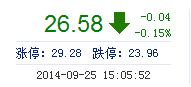 今開: 26.74 成交量: 3.13萬手 振幅: 1.24% 最高: 26.77 成交額: 8321.69萬元 換手率: 0.60% 最低: 26.44 總市值: 173.69億 市凈率: 9.55 昨收: 26.62 流通市...