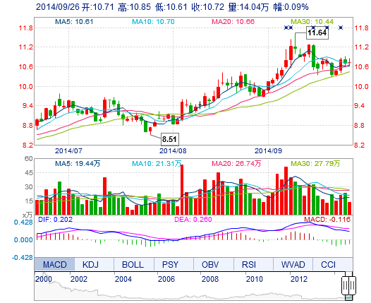 今開(kāi): 10.71 成交量: 14.04萬(wàn)手 振幅: 2.24% 最高: 10.85 成交額: 1.51億元 換手率: 1.58% 最低: 10.61 總市值: 95.53億 市凈率: 3.53 昨收: 10.71 流通市值...