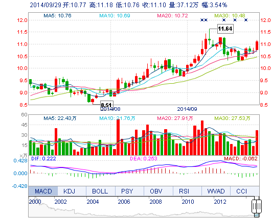 今開: 10.77 成交量: 37.12萬手 振幅: 3.92% 最高: 11.18 成交額: 4.08億元 換手率: 4.17% 最低: 10.76 總市值: 98.91億 市凈率: 3.66 昨收: 10.72 流通市值...