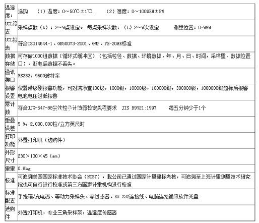 塵埃粒子計(jì)數(shù)儀主要技術(shù)參數(shù):