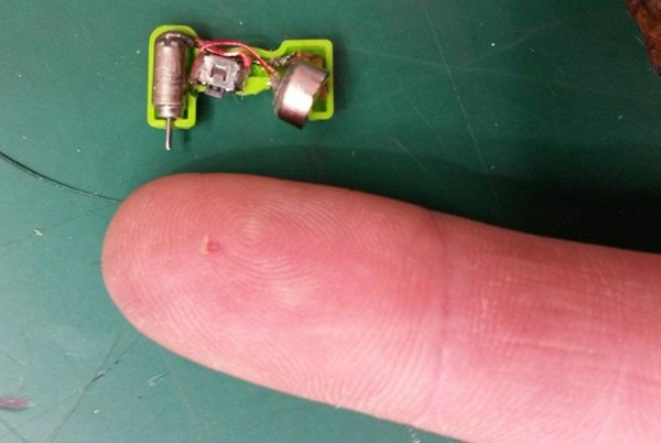 迷你電鉆的外殼由兩片外殼和一個固定馬達軸的卡盤三部分組成,打印所有部件總共用時25分鐘左右。Abernethy用助聽器上的電池作為電源,并安裝了一個小按鈕和一臺微型電動機,再將耳機線剝開用于內部的接線。