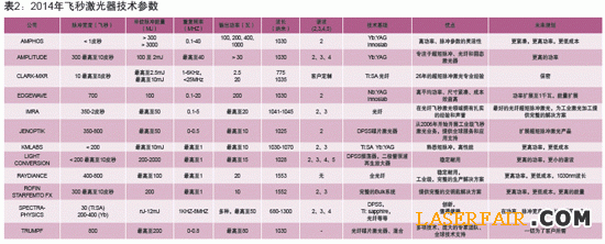 在撰寫(xiě)這篇文章時(shí),我們與所有參加了2013年調(diào)查的公司進(jìn)行了聯(lián)系,并請(qǐng)他們更新了數(shù)據(jù)。此外,許多不在之前名單上的公司也被邀請(qǐng)參與此次調(diào)查,2013年調(diào)查時(shí)他們或是沒(méi)有囊括入名單中,或是不愿意參與,或是當(dāng)時(shí)他們還沒(méi)有涉足超短脈沖激光器領(lǐng)域。因此本次的名單更為完整,但這絕不是一個(gè)完整的調(diào)查。名單被劃分為皮秒激光器和飛秒激光器;公司在表中的位置是由他們自己選擇的。
