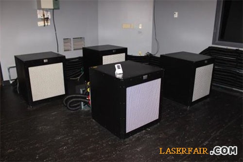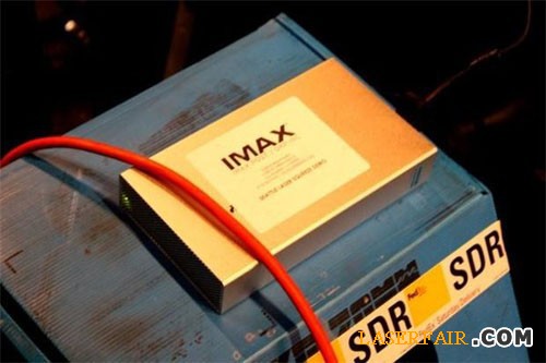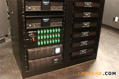 不過(guò),這套4K激光IMAX投影系統(tǒng)也需要用到大功率的冷卻設(shè)備。圖中的這四個(gè)盒子和一套黑色的皮管便是它們最主要的冷卻工具。
