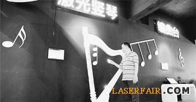 一位市民在重慶北碚區(qū)文化館里撥動激光豎琴?! ∵~入重慶市北碚區(qū)文化館的數(shù)字文化體驗廳,一串悅耳的琴聲便在耳邊響起這是由投