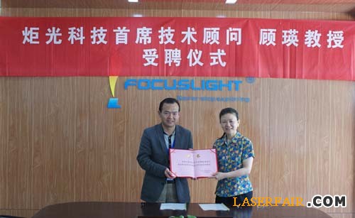 圖1 炬光科技總經理劉興勝博士向顧瑛教授頒發(fā)聘任證書