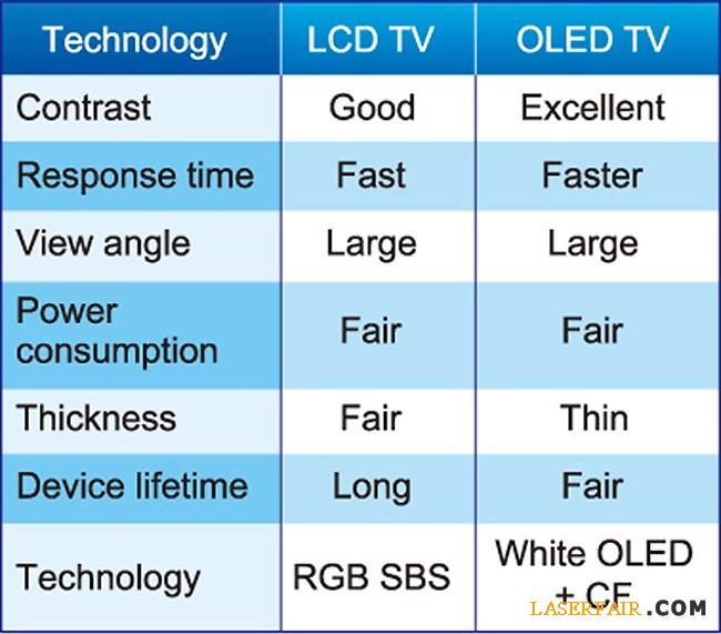 OLED屏幕采用紅、綠、藍(lán)(R、G、B)像素組成,其使用主流的有機(jī)材料鍍膜技術(shù)——真空蒸鍍注,這種制作方式要平衡每個(gè)像素內(nèi)紅、綠、藍(lán)有機(jī)發(fā)光體的放置量,維持亮度的均勻性,隨著OLED屏幕尺寸加大,會(huì)導(dǎo)致生產(chǎn)良品率下降,由于藍(lán)色有機(jī)發(fā)光體的壽命短,為了修復(fù)其缺陷,會(huì)稍微多蒸鍍一點(diǎn)藍(lán)色OLED有機(jī)發(fā)光體,但導(dǎo)致的結(jié)果是紅、綠、藍(lán)像素構(gòu)造中的色彩歪曲現(xiàn)象。除因蒸鍍槽設(shè)計(jì)緣故,致使蒸鍍技術(shù)的生產(chǎn)效率欠佳之外,也面臨適使用8代OLED面板生產(chǎn)線的蒸鍍?cè)O(shè)備的難產(chǎn)窘境。除繼續(xù)采用5.5代線生產(chǎn)OLED面板之外,也可以改用雷射技術(shù)進(jìn)行有機(jī)材料鍍膜,或采用氧化物面板和白光OLED搭配彩色濾光片濾出紅、藍(lán)、綠三原色,較接近現(xiàn)行的液晶顯示屏幕制程,即將紅、綠、藍(lán)有機(jī)發(fā)光體在整片白光OLED面板上垂直蒸鍍,通過(guò)色彩提純技術(shù)來(lái)表現(xiàn)色彩信息,鍍膜后再透過(guò)擴(kuò)散膜達(dá)成均勻的面光源,這種方式在蒸鍍有機(jī)物時(shí)由于不使用金屬遮罩,所以不受面板尺寸限制,可以均勻蒸鍍有機(jī)物,并且是通過(guò)垂直蒸鍍紅、綠、藍(lán)有機(jī)發(fā)光體進(jìn)行色彩提升的構(gòu)造,所以藍(lán)色有機(jī)發(fā)光體的壽命問(wèn)題得到了很好的解決,雖然其色彩表現(xiàn)相對(duì)較差且耗電,但良品率相對(duì)較高,易于量產(chǎn)。