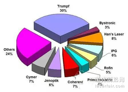 圖2:通快占據(jù)激光系統(tǒng)材料加工市場(chǎng)30%的銷售份額。