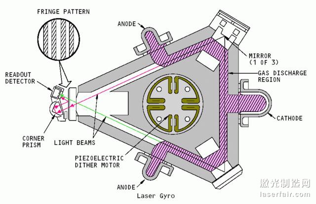 激光陀螺儀,顧名思義就是利用激光測方向變化的陀螺儀,其基本原理利用了光學(xué)中的塞格尼克理論,即在一個環(huán)形軌道里,發(fā)射兩束方向相反的激光。在環(huán)形軌道沒有轉(zhuǎn)動的情況下,它將會用相同的時間導(dǎo)彈出發(fā)點并且具有相同的相位。